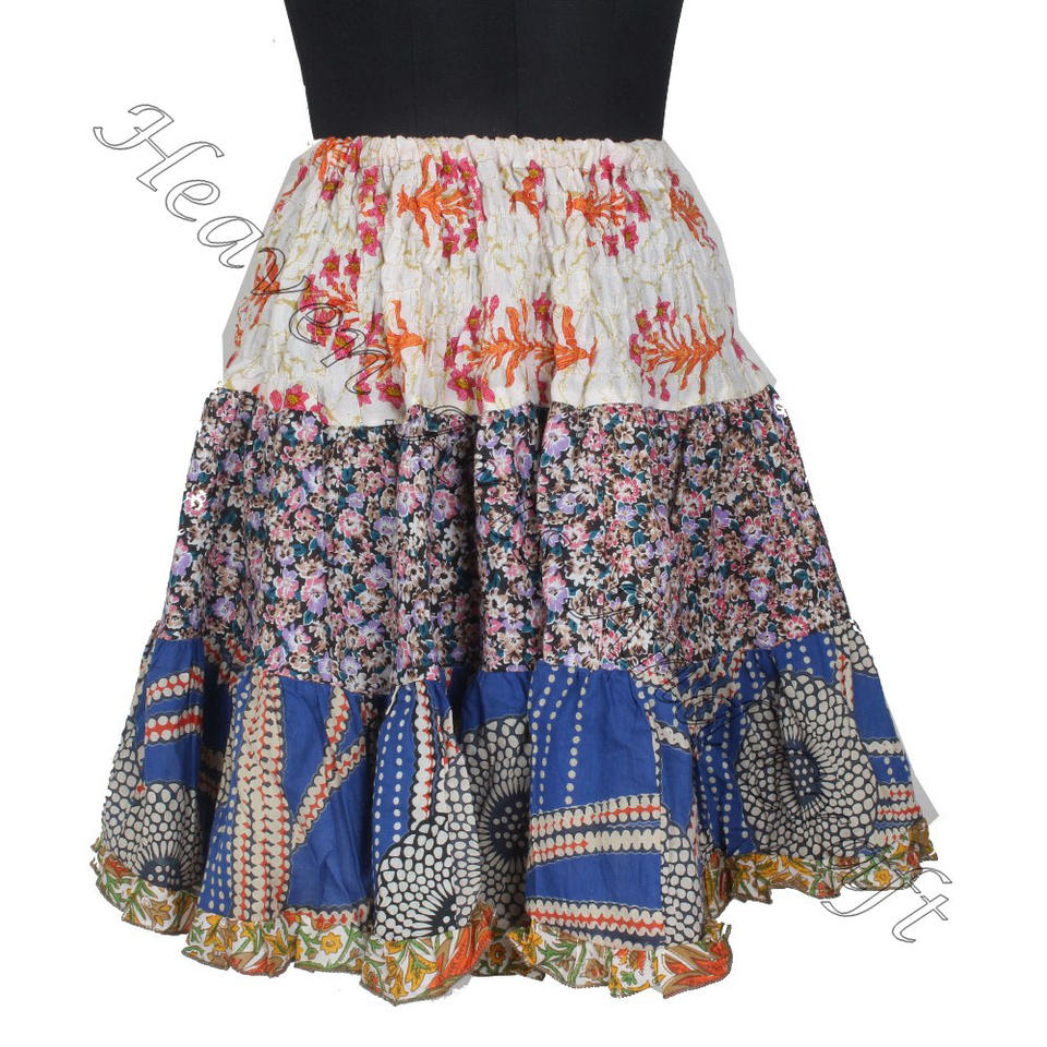Keywords:Vintage Cotton Sari Patches Mini Skirt