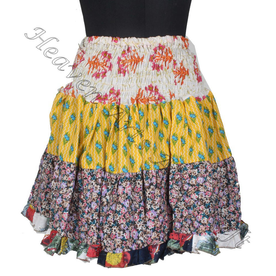 Gypsy Indian Patchwork Mini Rara Hippy Boho Festival Skirt Boho Stylish MS040 Patch Cotton Mini Sexy Skirt for Summer Wear