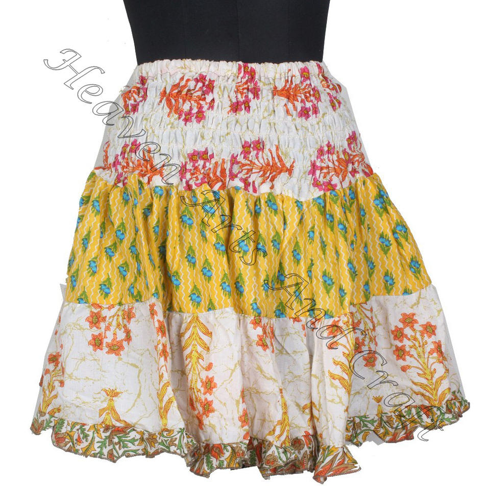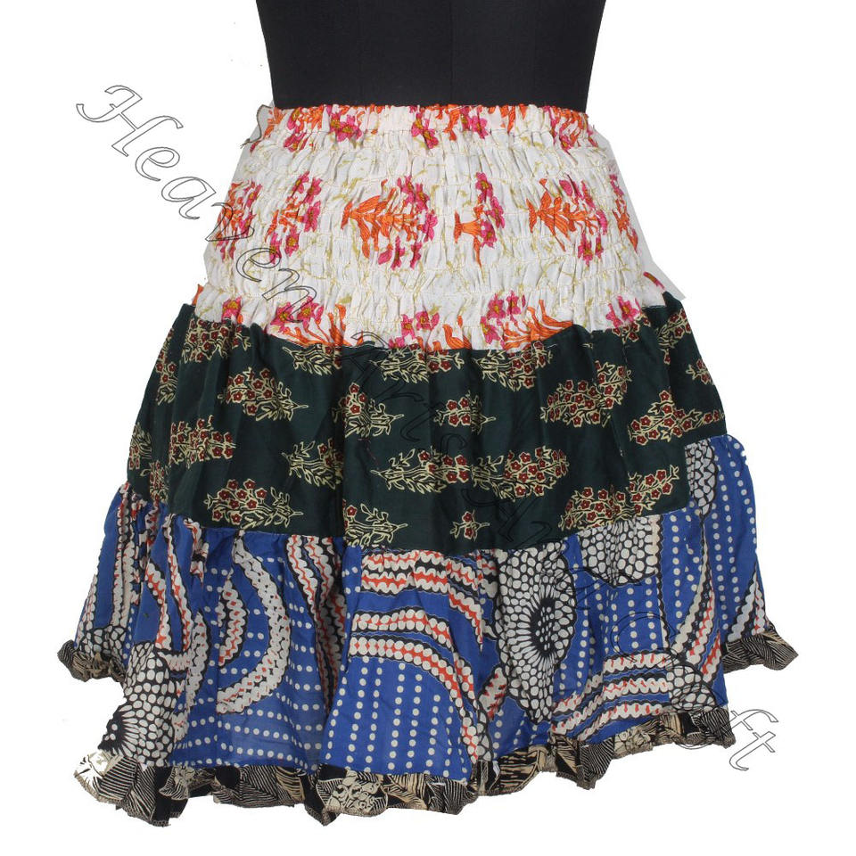Keywords:Vintage Cotton Sari Patches Mini Skirt