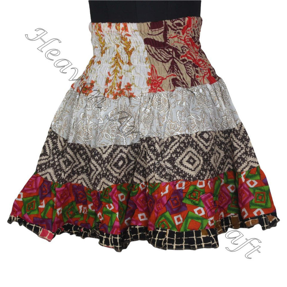 Keywords:Vintage Cotton Sari Patches Mini Skirt