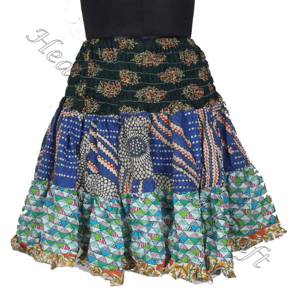 Gypsy Indian Patchwork Mini Rara Hippy Boho Festival Skirt Boho Stylish MS087 Patch Cotton Mini Sexy Skirt for Summer Wear