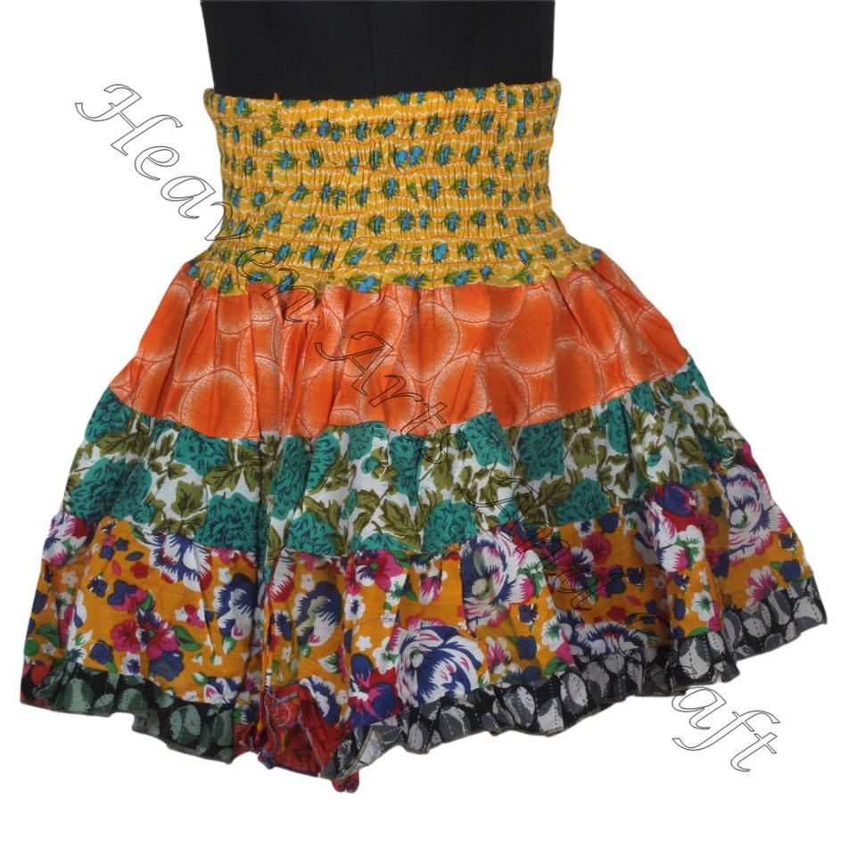 Keywords:Vintage Cotton Sari Patches Mini Skirt