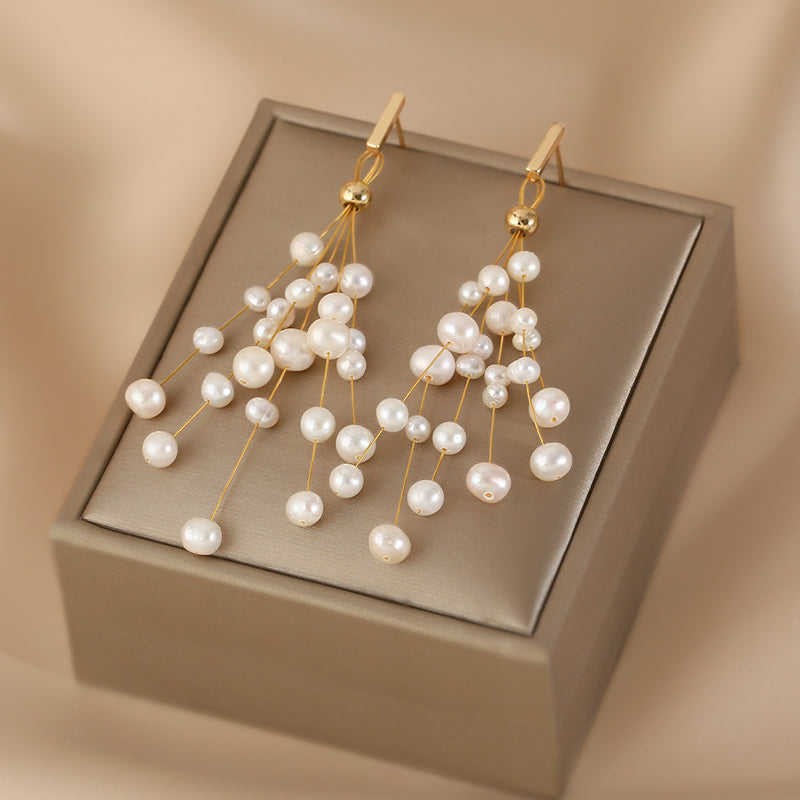 Gypsy Women's Long Tassel Earrings with Natural Pearl Elegant Accessory