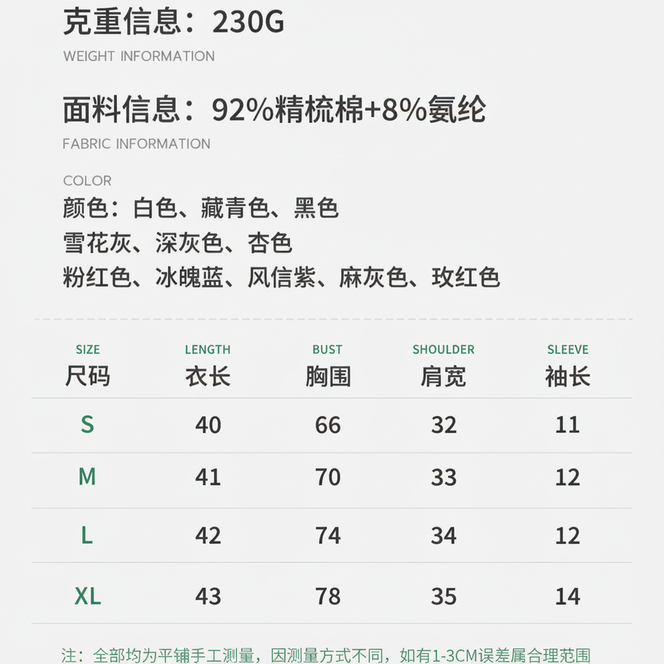 Gz Women's 230G Neck Short Sleeve Solid Color T-Shirt Breathable Stretch Cotton Spandex Summer Crop Top Straight Fit Waist