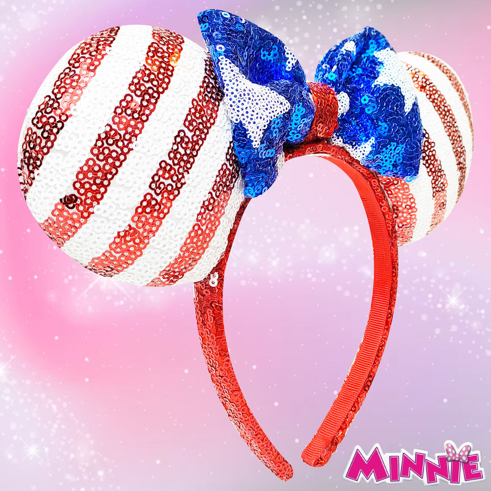 H.E.R ACCESSORIES Licensed Disney Minnie Mouse Ears Costume Headband With Bow and Character Ears Bow USA theme sequins Ages 3+