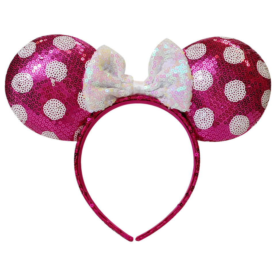 H.E.R ACCESSORIES Licensed Disney Minnie Mouse Pink Polkadot Ears Costume Headband With Bow and Character Ears White Bow Ages 3+