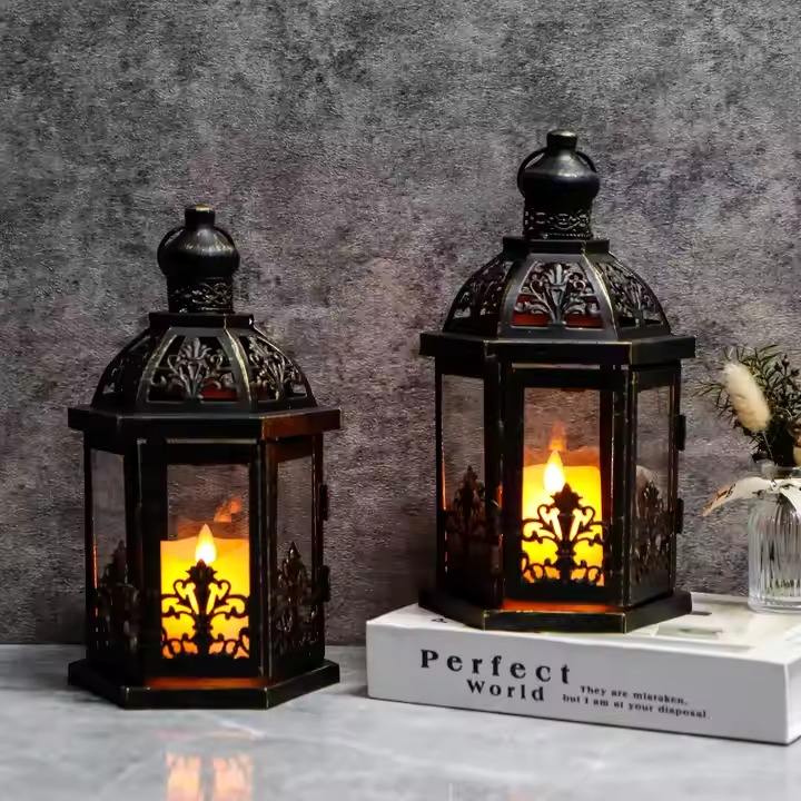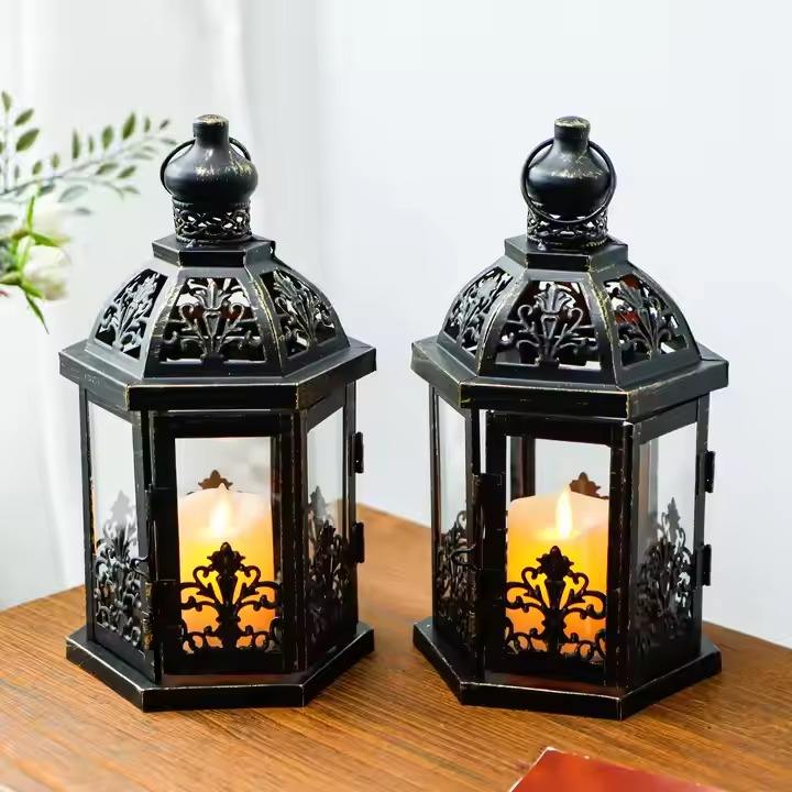 H.M.A Handicrafts Minimalist Black and Gold Lantern with Glass Panels for Stylish Candle Display