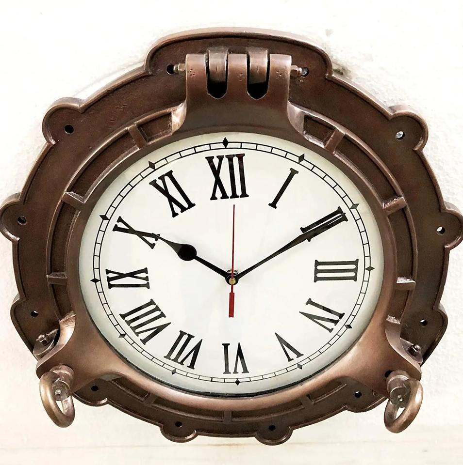 H.M.A Handicrafts Nautical Aluminium Porthold Wall Clock Vintage Maritime Quartz Timepiece for Home Office or Cabin Decor