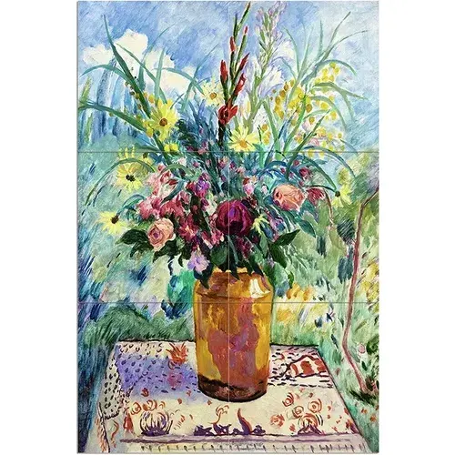 H. Manguin Flowers Tile Mural Jar Roses Kitchen Wall Backsplash in Marble Ceramic Premium Accessory