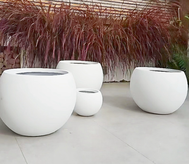 H030 Professional Oval Flower Pot Fiberglass Custom Round Vase Outdoor Art Decor Street Cafe Room Front Window Box Planting Pots