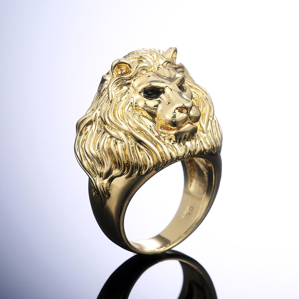 H109 Lion Head Ring 24K Gold Plated Brass Men's Fashion Statement Gift Jewelry