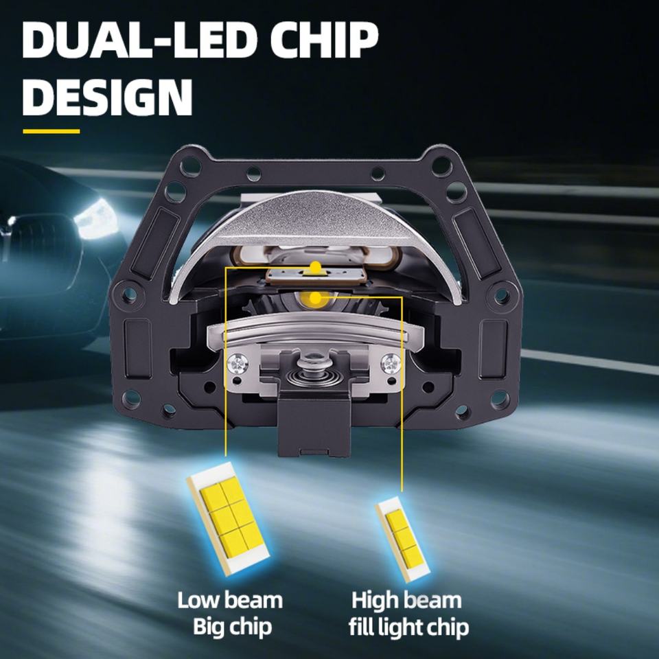 H4 LED 3 Inch Bi LED Projector Lens with Built in Driver 6000K Projector Light for Car High Low Beam Car Projector Light