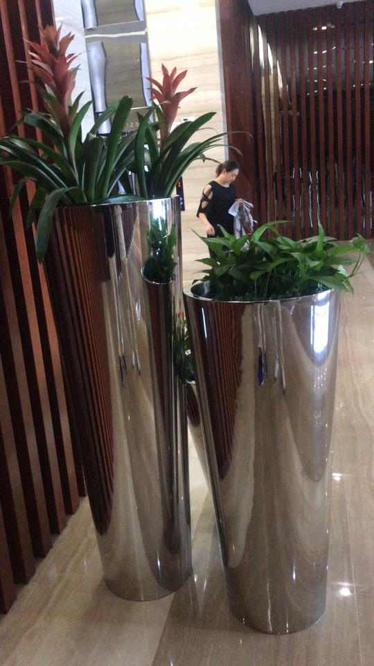 H501 High Quality Indoor Flowerpots Cylindrical Stainless Steel Large Vase Lobby Hotel Shopping Center Office Art Planting Pots