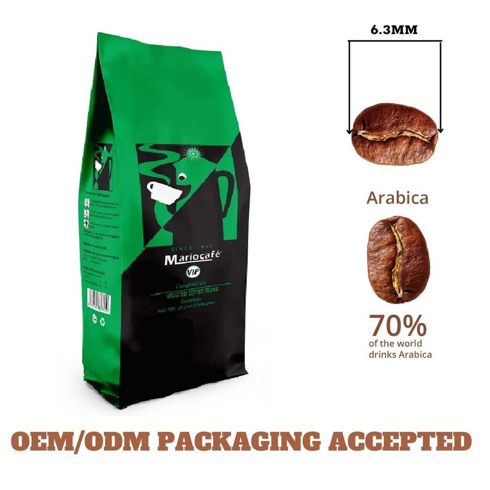 HACCP High Quality Roasted Coffee Beans Mario Coffee 100% Arabica Viet Nam Origin With HACCP -ISO 9001:2015 1kg/Bag