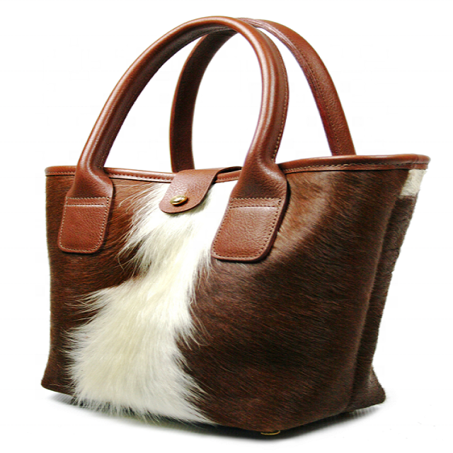 GENUINE HAIRON DESIGNER BROWN JERSEY LEATHER HANDBAG