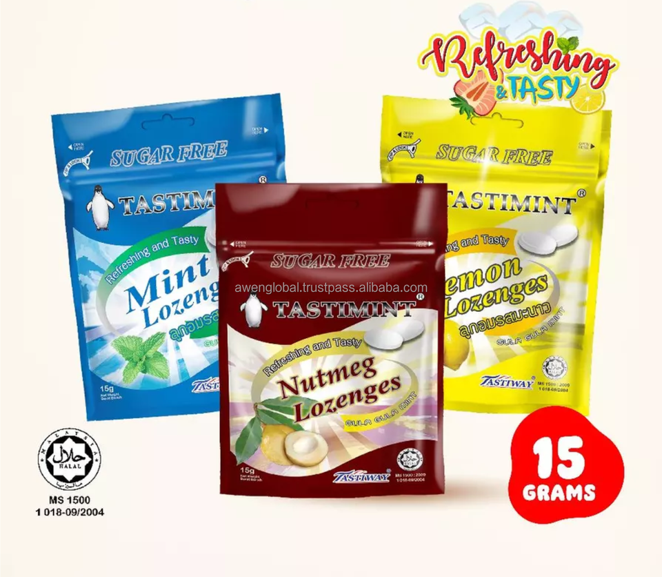 HALAL Malaysia Tastimint Sugar-Free Tablet Mint Candies Refreshing 15g/ Packet (Zip Locked Bag)