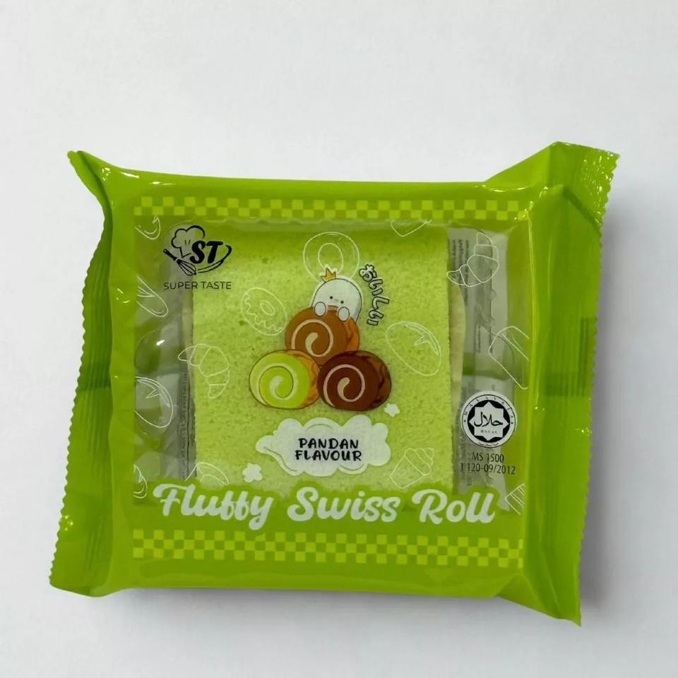 HALAL Mini Fluffy for Swiss Roll Slice 85g Fresh Style Chocolate Cake with pandan flavour Box and Bag Packaging Made in Malaysia