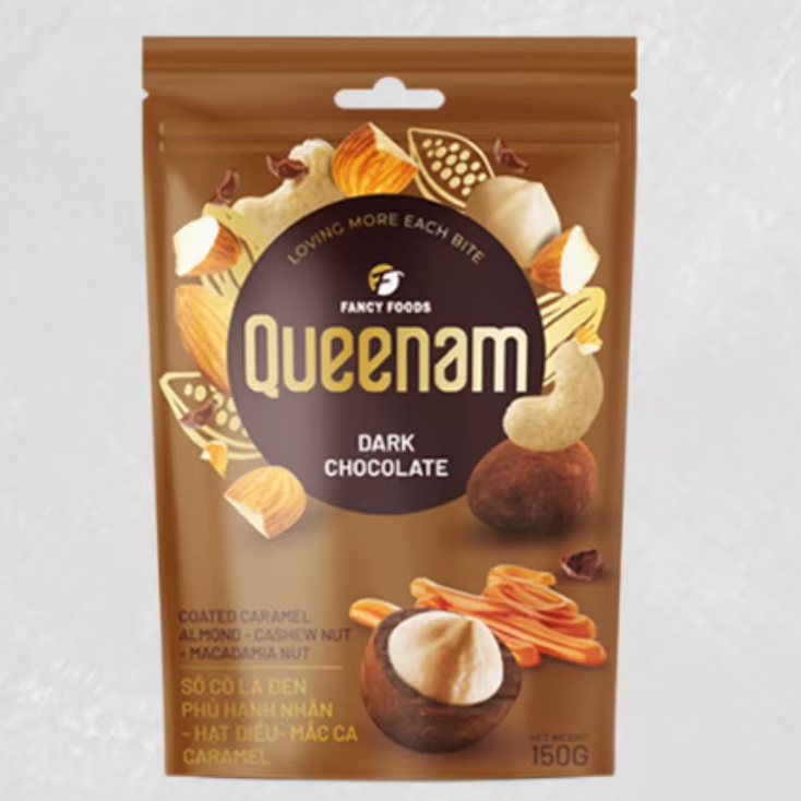HALAL OEM Premium Dragee Dark Chocolate Coated Almond Cashew Macadamia Caramel Nut 150G Candy Queenam Bulk Wholesale
