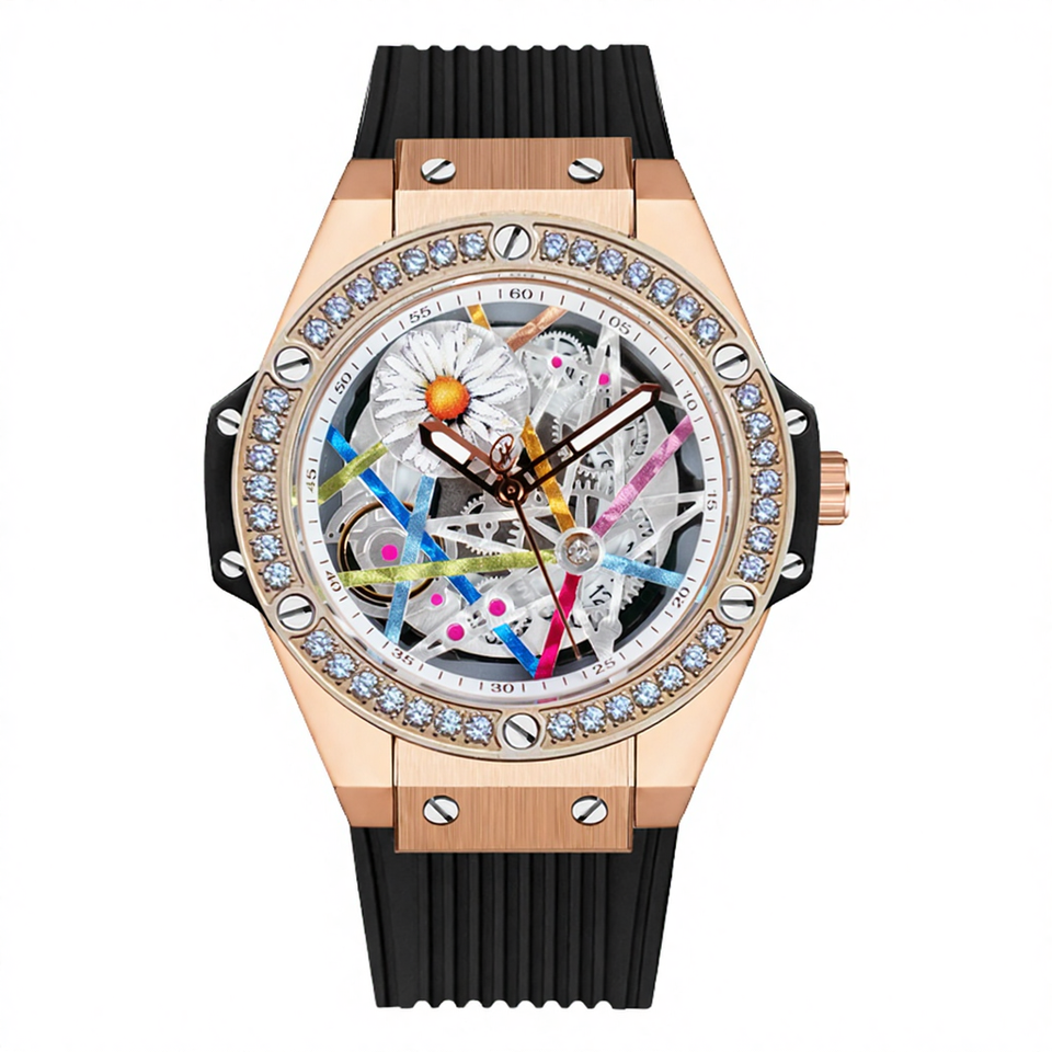 HANBORO High Quality Women's Quartz Watch Colorful Sunflower Series Light Luxury Luminous Waterproof Glass Dial Window Display