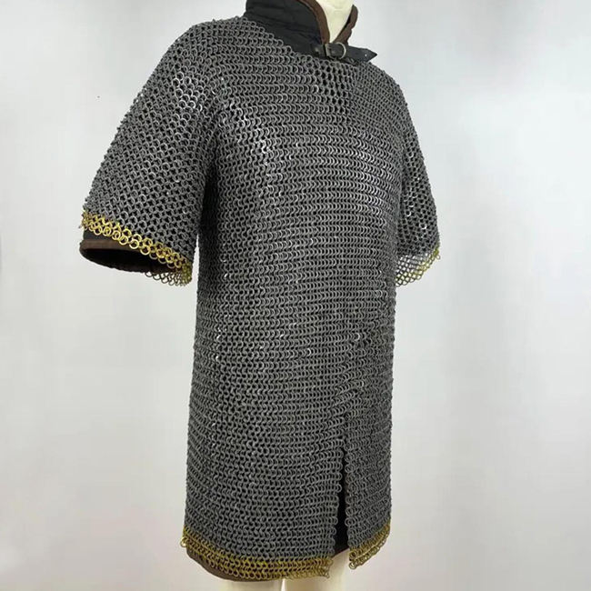 HAND MARICLES Adult Men Renaissance Medieval Knight Tunic Shirt Faux Chain Mail Armor Top Costume Bracers Waist Belt Four
