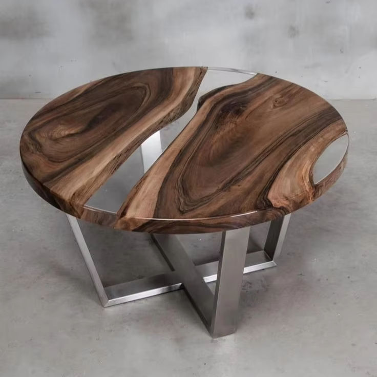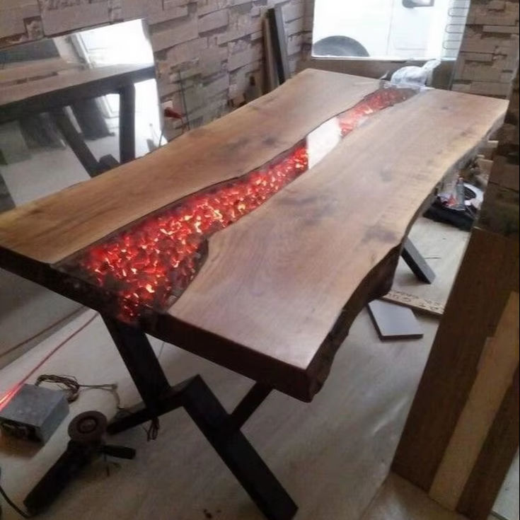 HAND RESIN and WOOD Best Quality Luxury Home Furniture Solid Walnut Wood Restaurant Dining Coffee River Kitchen Epoxy