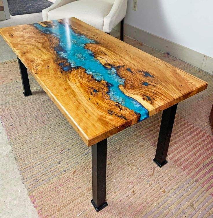 HANDCRAFT ROUND EPOXY RESIN TABLE FOR DINING ROOM Furniture Wood and Resin River Table for Home Office