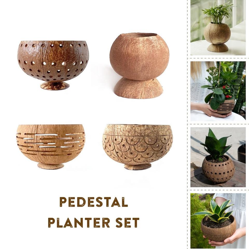 HANDMADE COCONUT SHELL BOWLS HUSK PLANTER HANGER / COCONUT SHELL FLOWER POT FROM ECO2GO VIETNAM