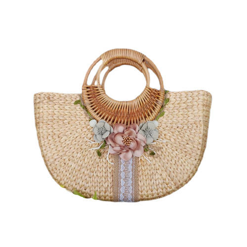 HANDMADE CRAFT Handmade Blue Lotus Vietnam Cylinder Water Hyacinth Handle Bag Wholesale
