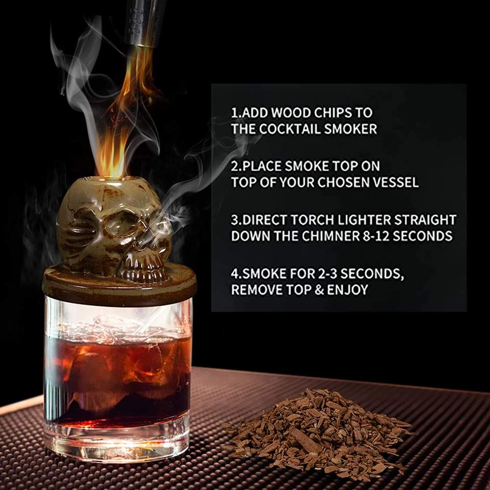 HANDMADE Skull Cocktail Smoker Kit - 10 Flavor Wood Chips Old Fashioned Drink Cocktail Smoker Infuser Kit. Whiskey