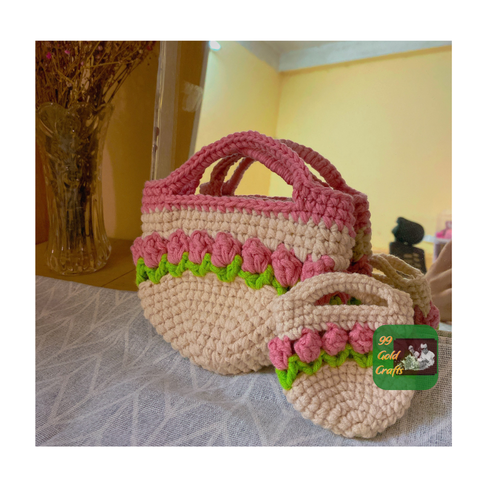 HANDMADE WOOL CROCHET TOTE BAG LIGHTWEIGHT COLORFUL DESIGN PERFECT FOR DAILY OUTFIT STYLE