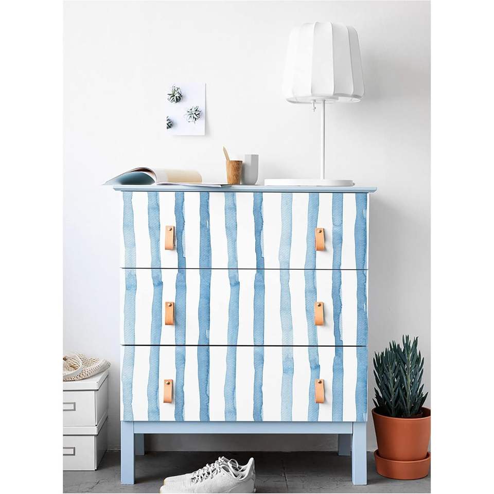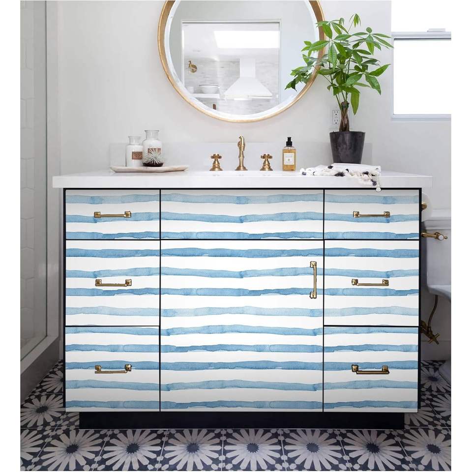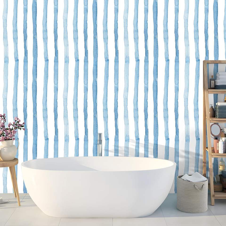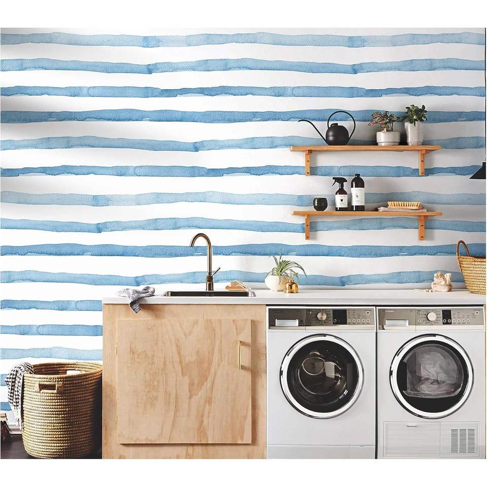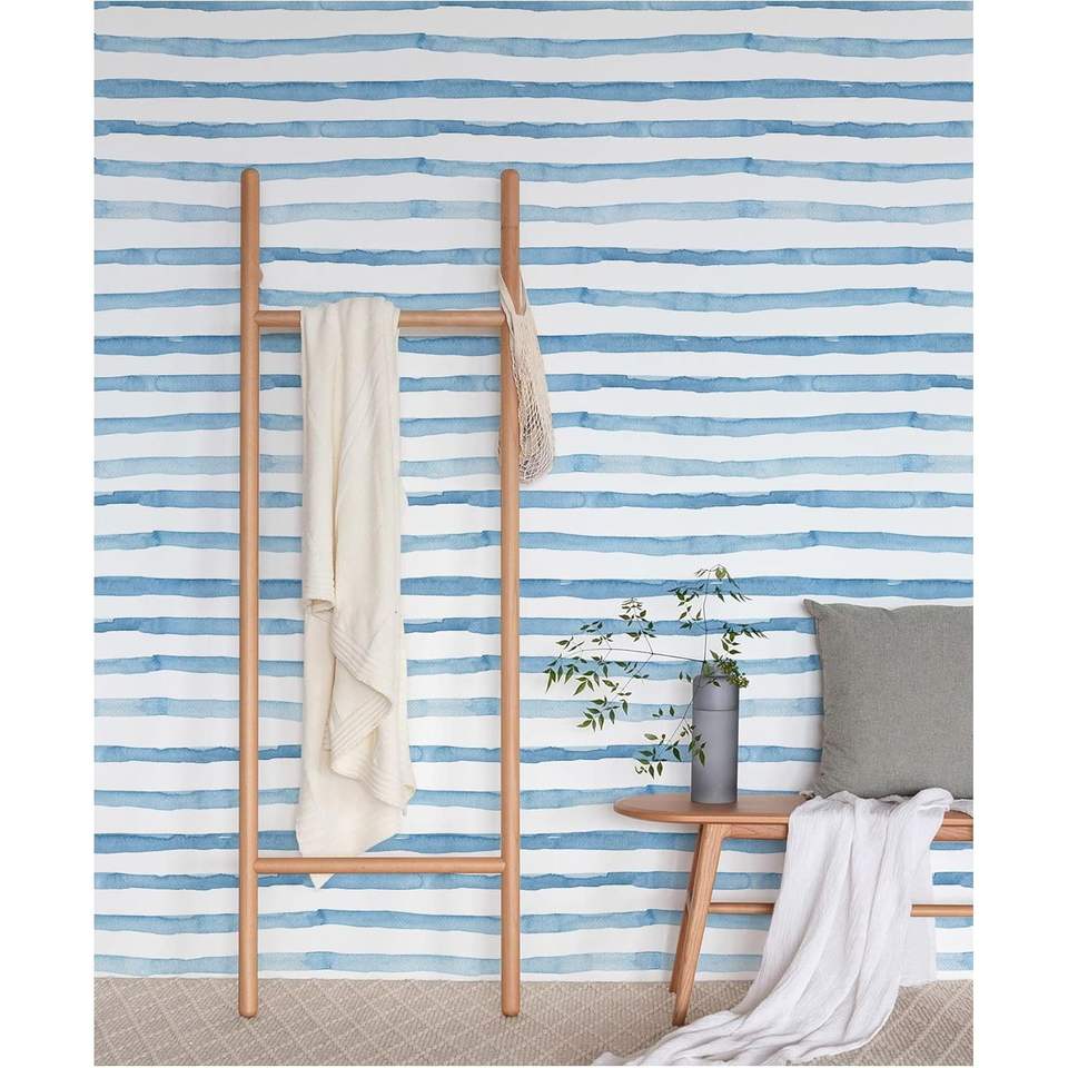 HAOKHOME Custom Indigo Blue White Striped Peel Stick Wallpaper Coastal Boho Style 17.7in X 9.8ft Removable Self Adhesive Vinyl