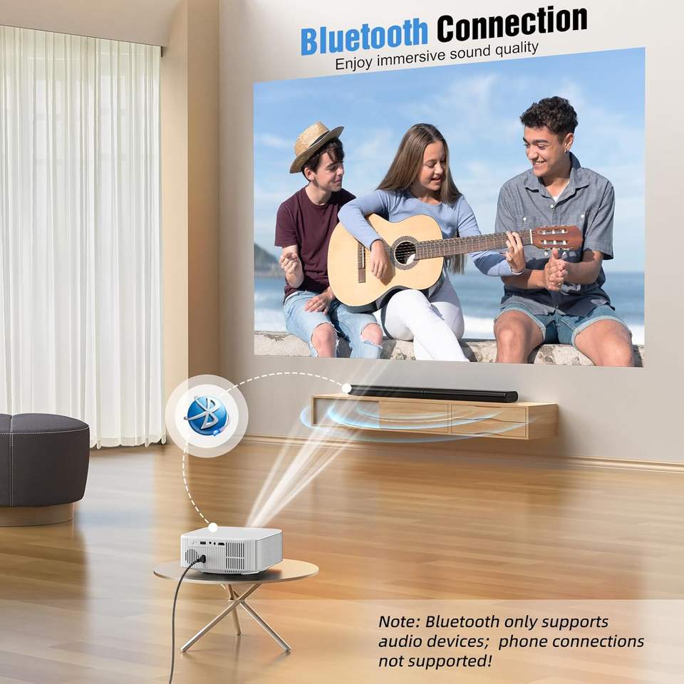 HAPPRUN Outdoor Movie Projector Native 1080P HD with Short Throw for Bluetooth Compatibility US Plug