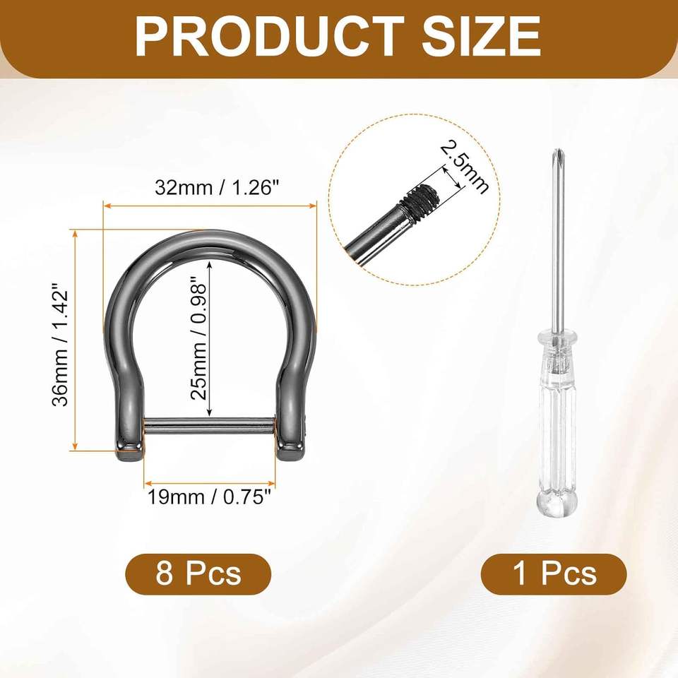 HARFINGTON Pcs D Rings Screw In Shackle Metal Horseshoe U Shape Semicircle D Ring Purse Key Holder With Screwdriver For DIY Leat