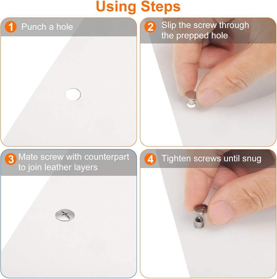HARFINGTON Sets Chicago Screws Leather Rivets M Inch Belt Binding Metal Screws For Leathercraft Bag Shoes Purse Bookbinding Silv