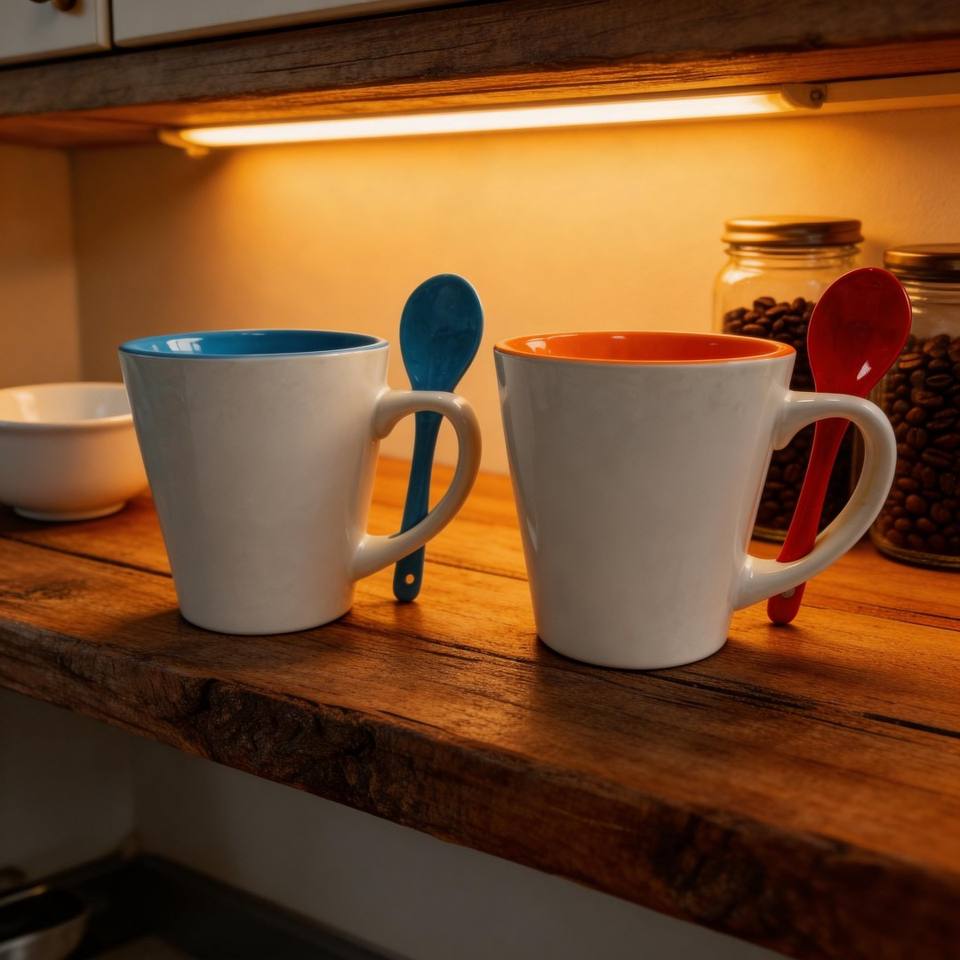 HARVIT White Ceramic Inner Color Glazed Contemporary V-Shape Porcelain Coffee Mug/Cups with Spoon Cheap Wholesale Tea Mug Hunan