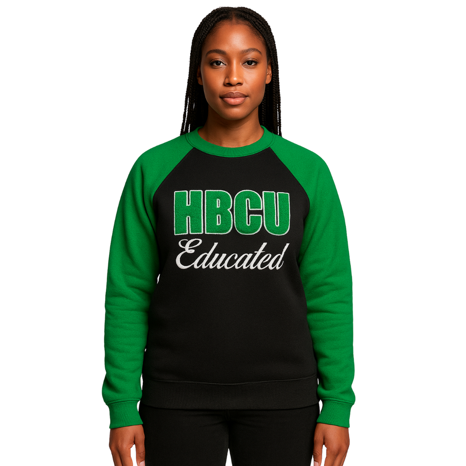 HBCU Educated Black Raglan Sleeves Sweatshirt Chenille Embroidery Greek Sorority Divine Nine Apparel Custom Sweater