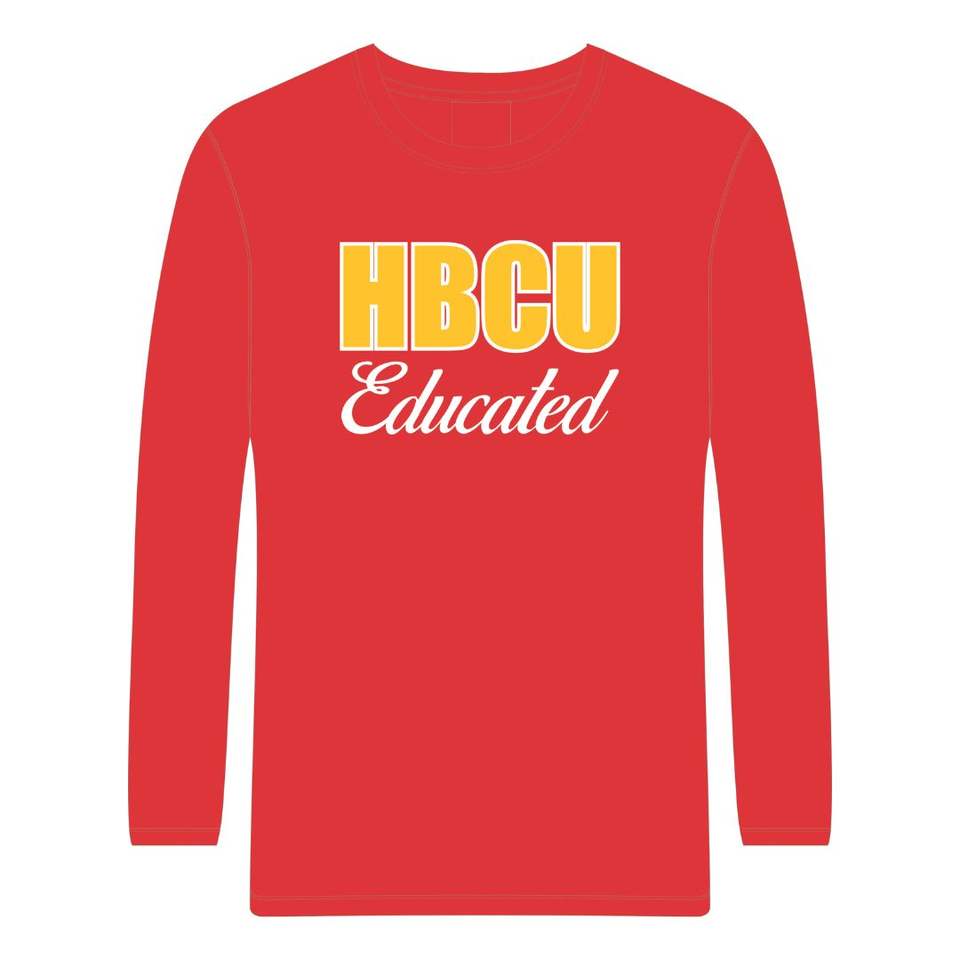 HBCU Educated Bright Red Long Sleeve T Shirt Chenille Embroidery Greek Sorority Divine Nine Collegiate Pride Custom Logo Tee