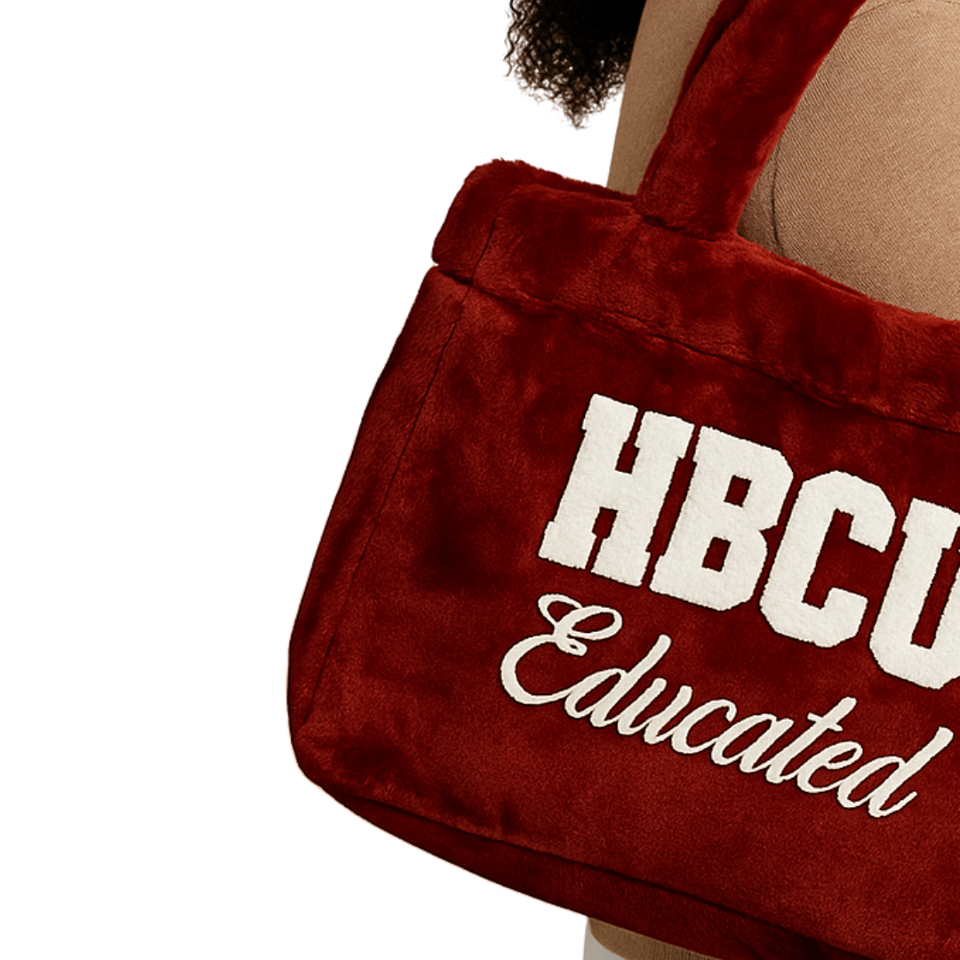 HBCU Educated Maroon DST Fur Tote Bag Delta Fuzzy Purse Plush Chenille Embroidery Greek Sorority Divine Nine Fashion Handbag