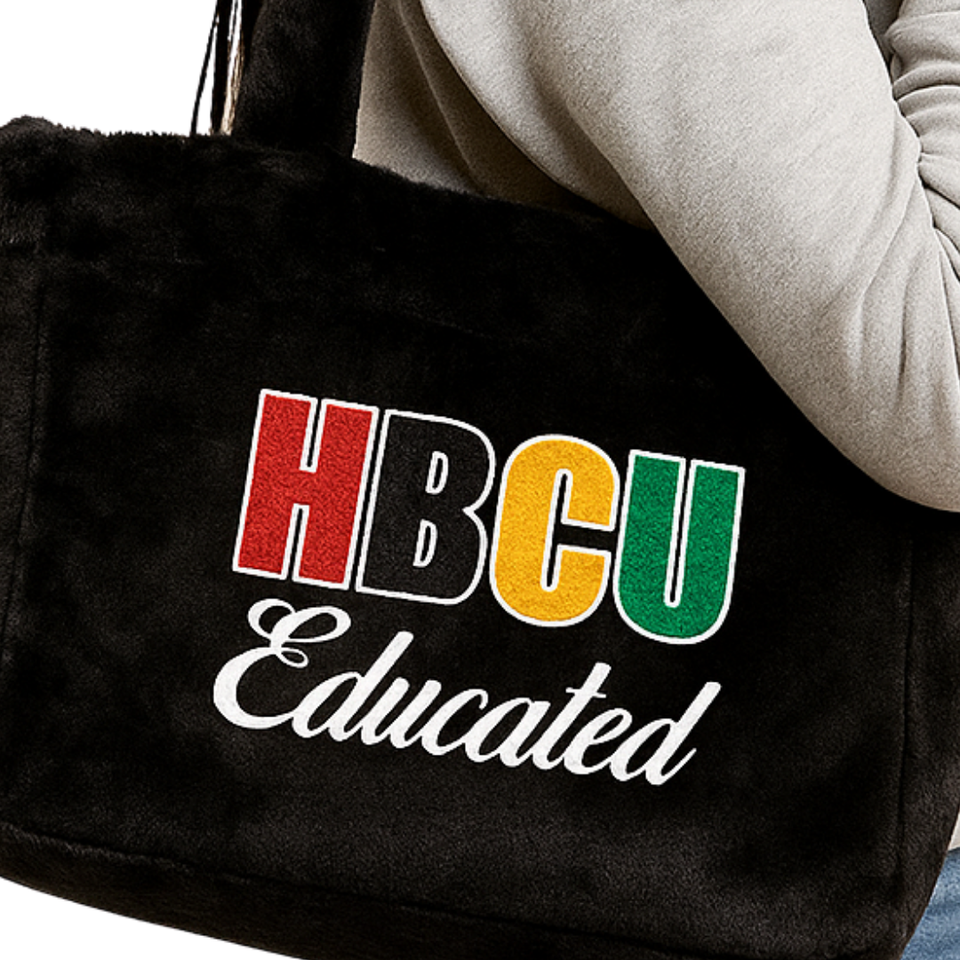 HBCU Educated Pan African Faux Fur Water Resistant Tote Bag Plush Chenille Embroidery Greek Sorority Divine Nine Gift Fashion