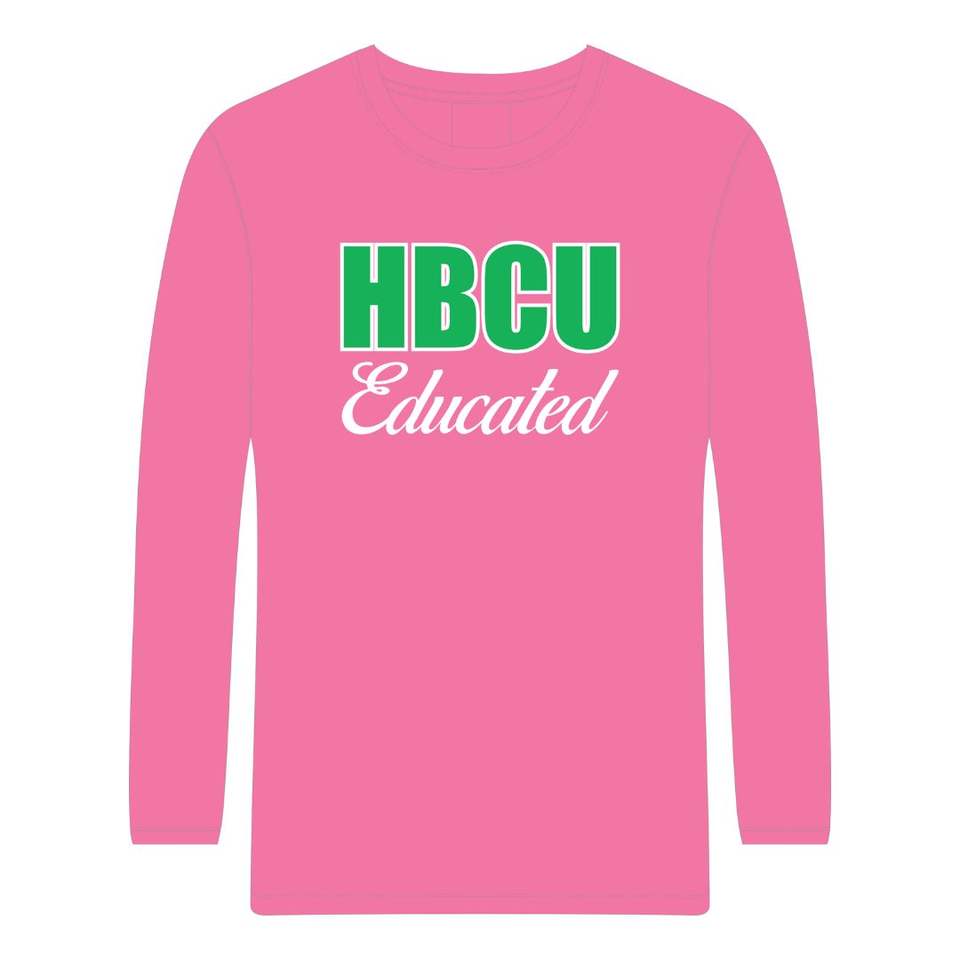 HBCU Educated Pink Long Sleeve T Shirt 100 Cotton Chenille Embroidery Greek Sorority Divine Nine Collegiate Fashion Tee