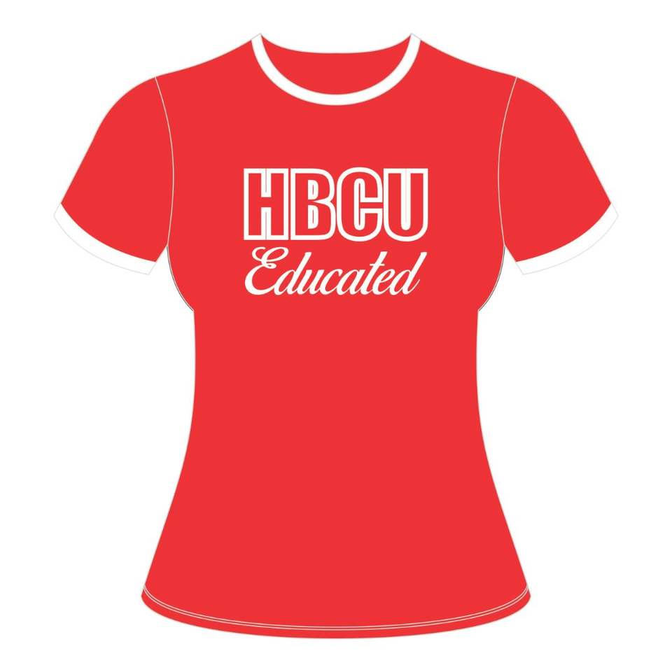 HBCU Educated Women Chenille Contrast Trim Ringer T Shirt Red with White Embroidered Letters Cotton Collegiate Pride Apparel