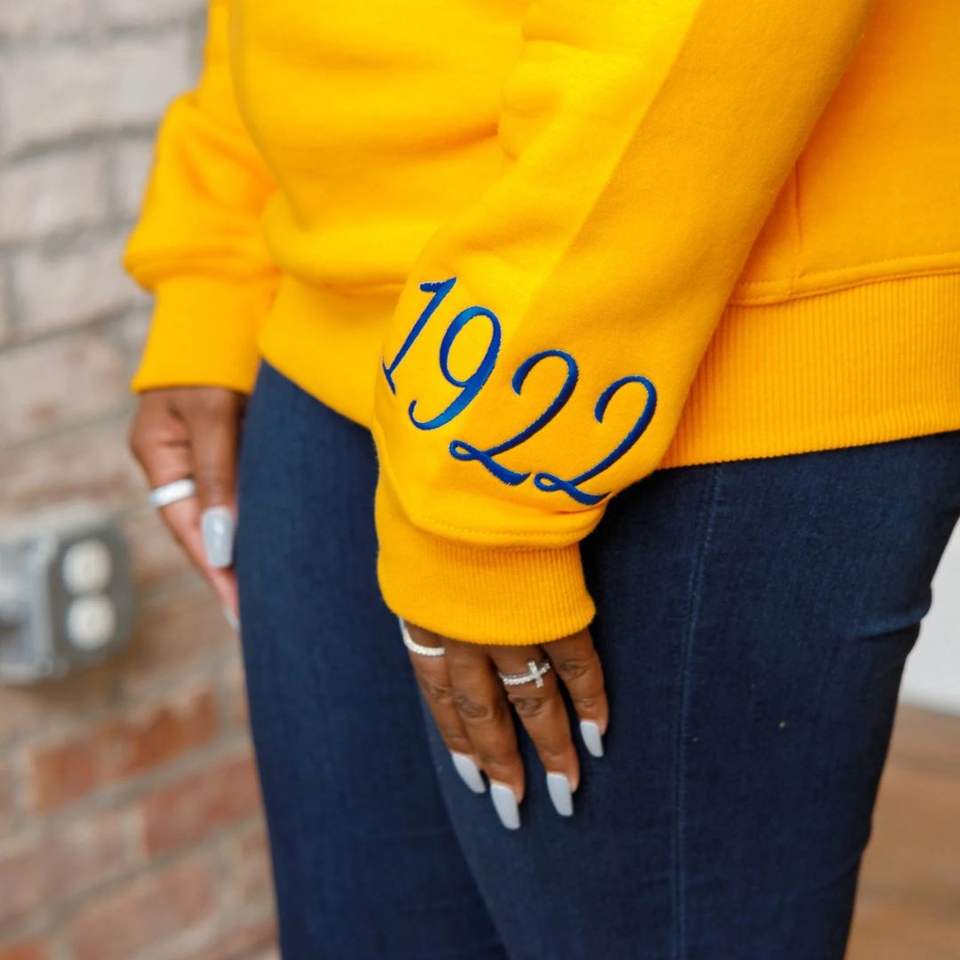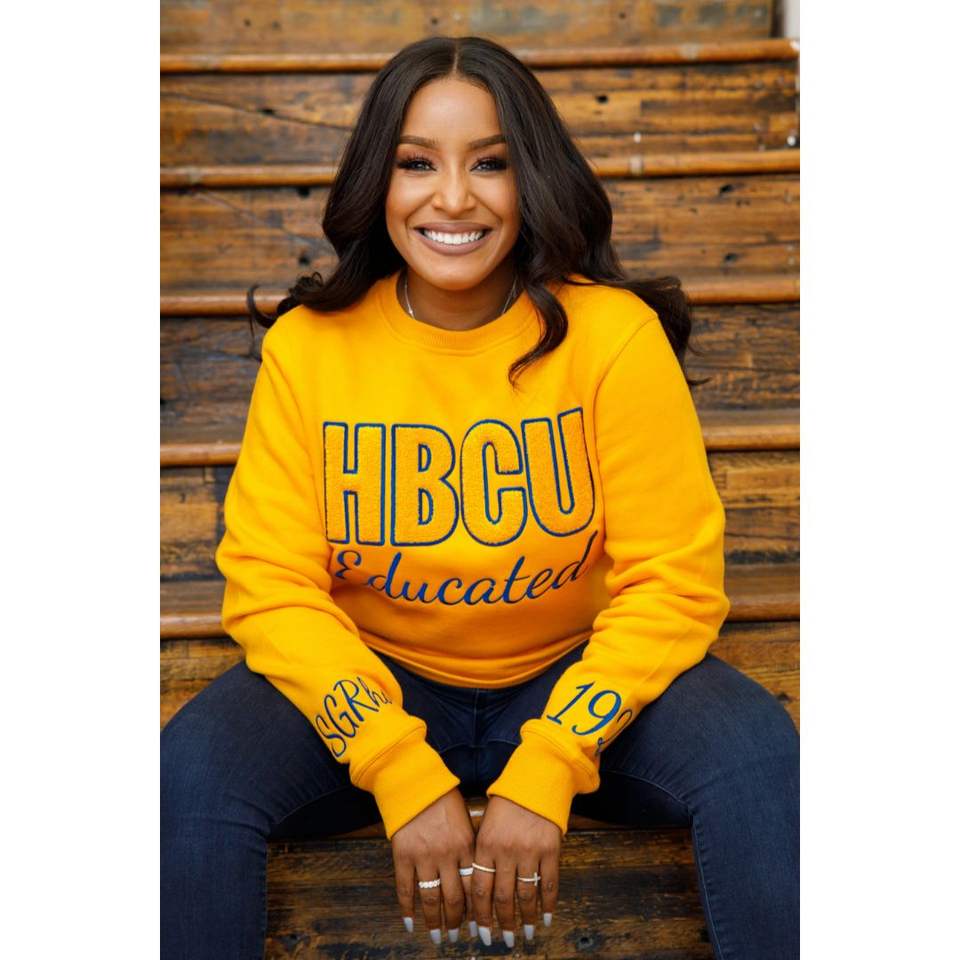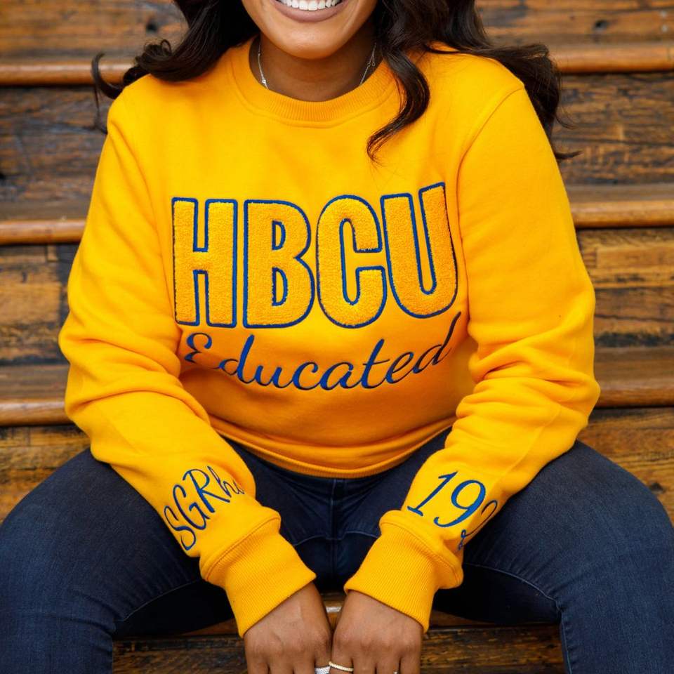 HBCU SGRho Educated Chenille Sweatshirt Gold & Blue Embroidered Letters Premium Cotton Blend Divine Nine Greek Life Apparel
