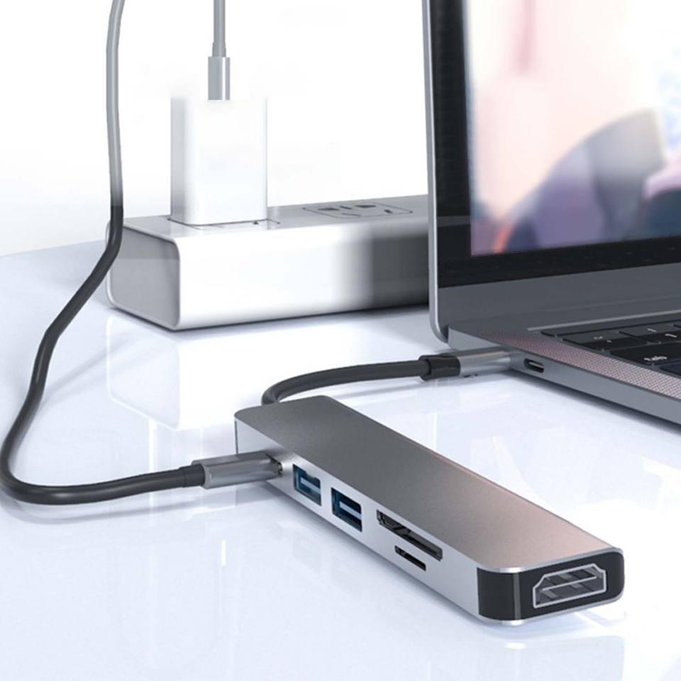 HC-82C Type C Hub with 6 EN 1 for HDMI 4K 60Hz USB2.0 USB3.0 PD60 SD/TF Aluminium Material for iPad HDTV Computer Data Transfer