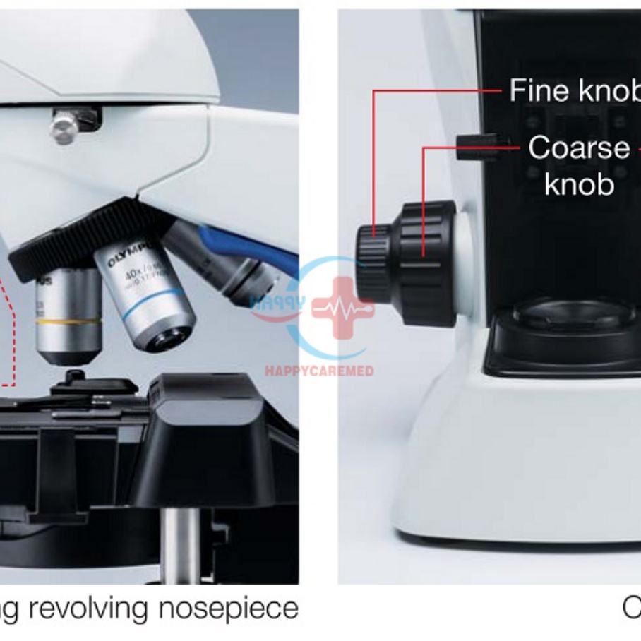 Focusing mechanism:mechanical stage with right-hand knob