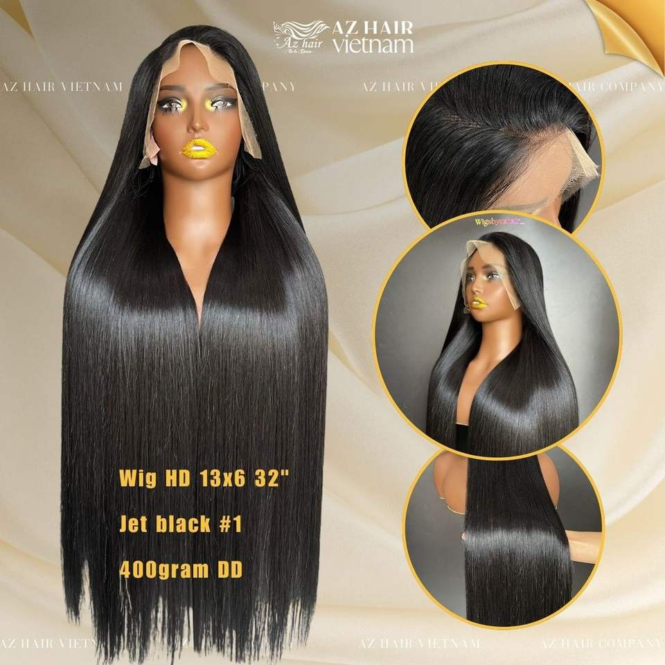 HD Lace Full Head Wigs Jet Black Color Vietnamese Hair Natural Straight 180 Density 12A Grade Top Quality