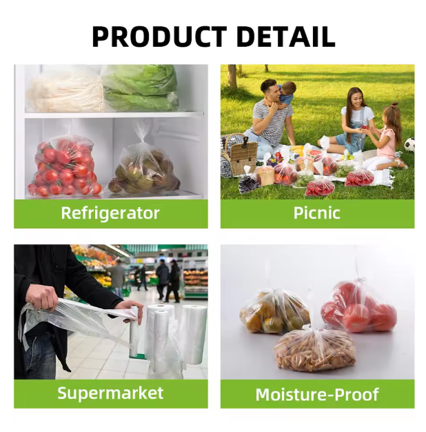 HDPE LDPE Clear Plastic Food Fruit Vegetable Packaging Flat Bag Supermarket Printing Flat Bag on Roll