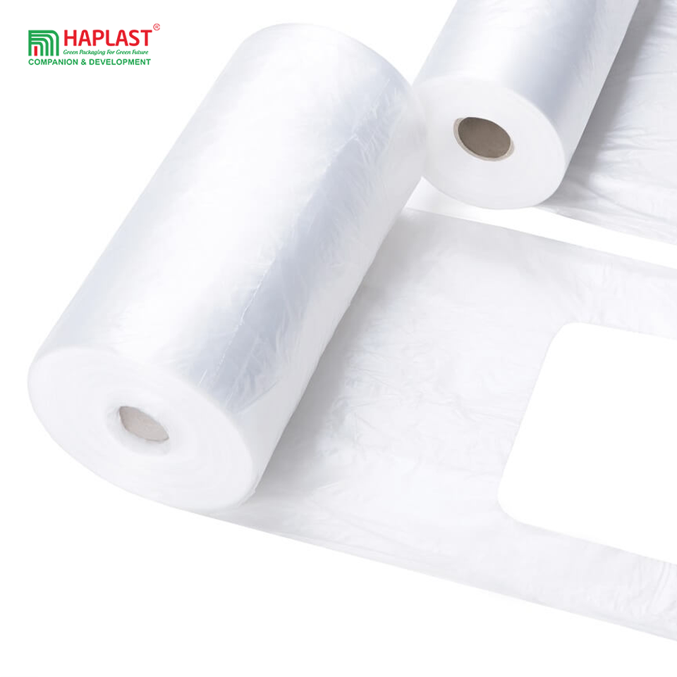 HDPE T-shirt Bag on Roll Knot Bag on Roll for Grocery Shopping Leak Proof Recyclable From Vietnam Factory