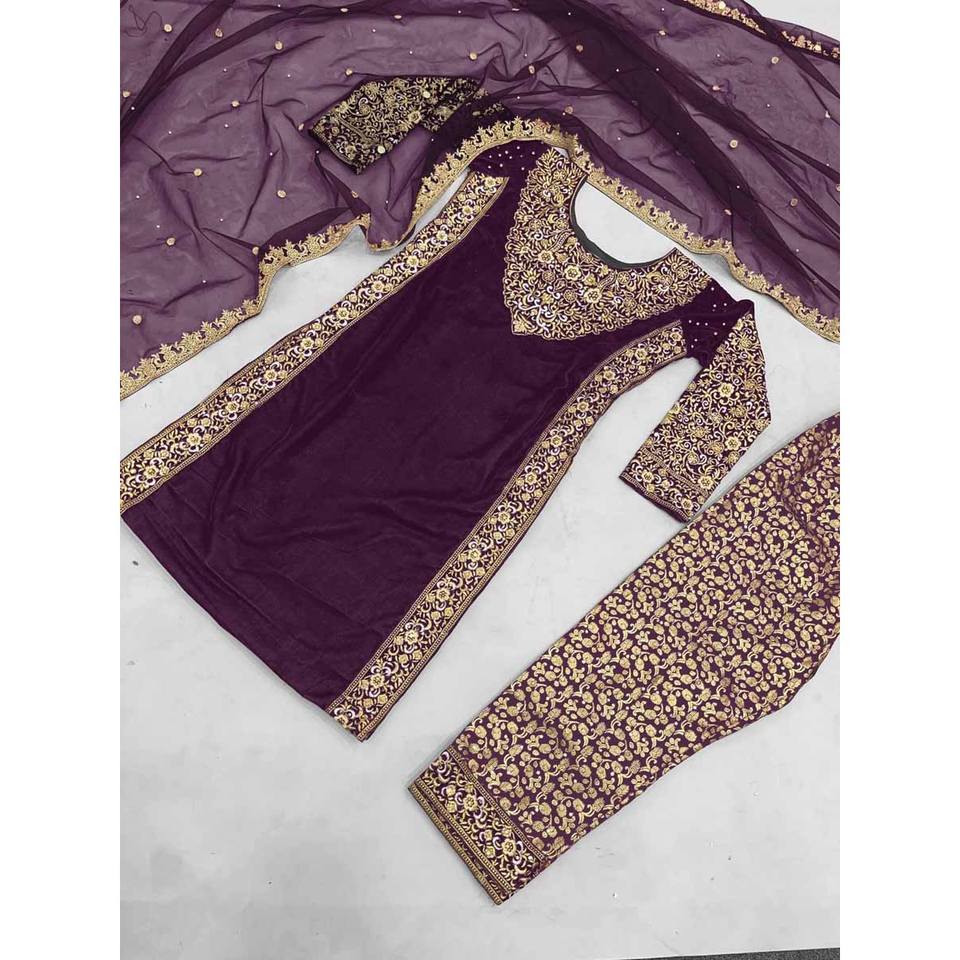 HEAVY VELVET FABRIC EMBROIDERY WORK TOP PANT and HEAVY BUTTERFLY NET DUPATTA MAROON Gharara