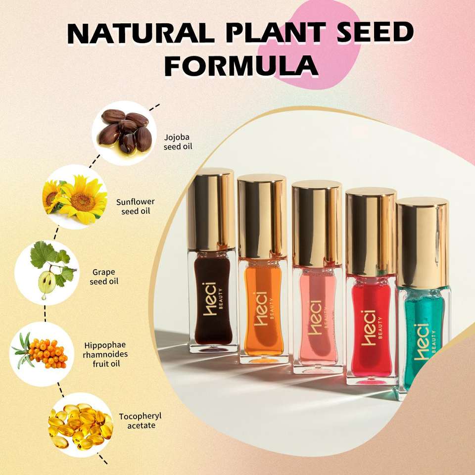 HECI Pure Natrual Plant Tinted Lip Oil With Large Applicator Moisturizing Lip Care Cruelty Free Plant-Based Lip Oil