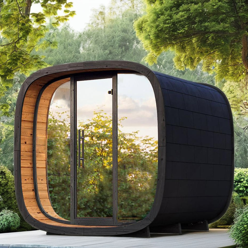 HELIUS 4 People Cube Sauna Steam Sauna Room with Harvia Electric Heated Sauna Stove